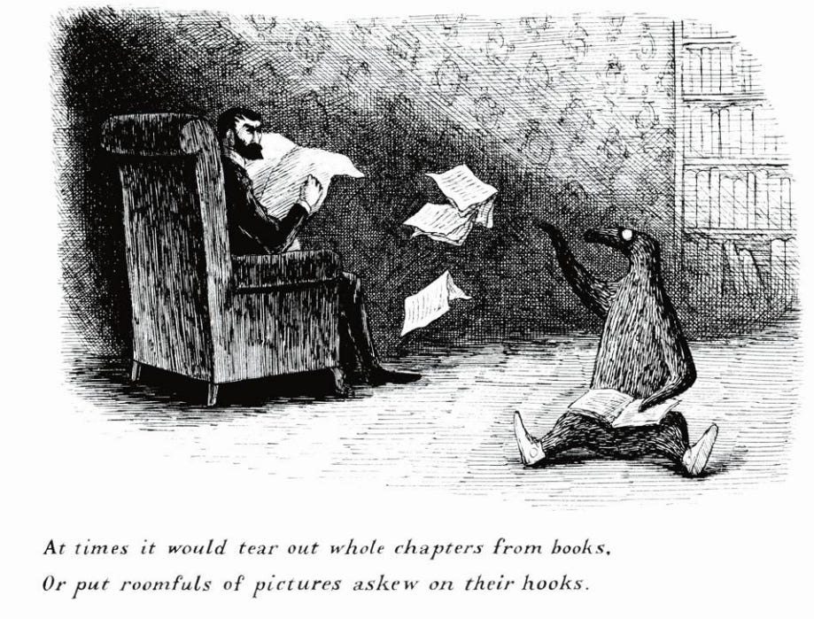“At times it would tear out whole chapters from books, or put roomfuls of pictures askew on their hooks.”